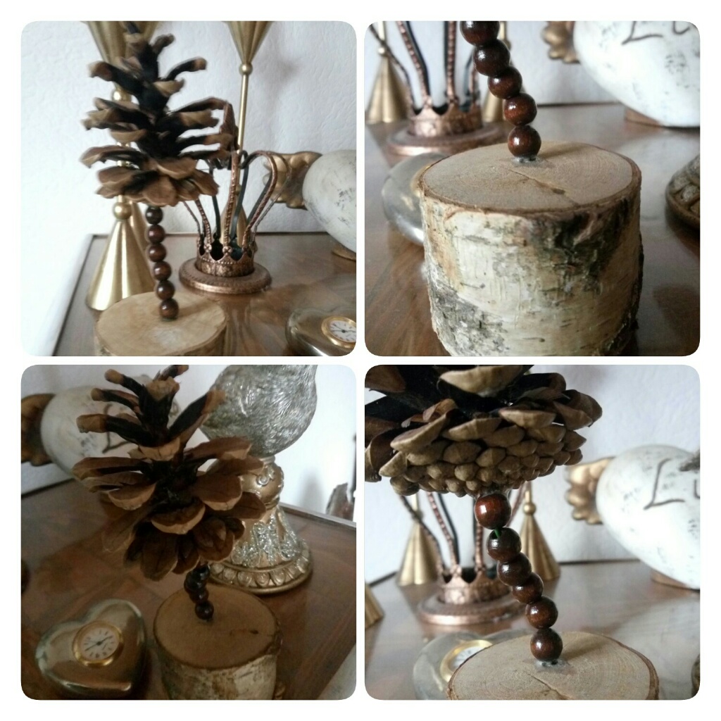 Kl.. Tannenzapfen Bäume - Nucki - 24.10.2016 BirkenästeKlein gesägt Draht mit Perlen besteckt Birkenast kl Loch reinmachen Draht in den Birkenast reinstecken Mit Heißkleber festkleben Und den Tannenzapfen an den Draht kleben |