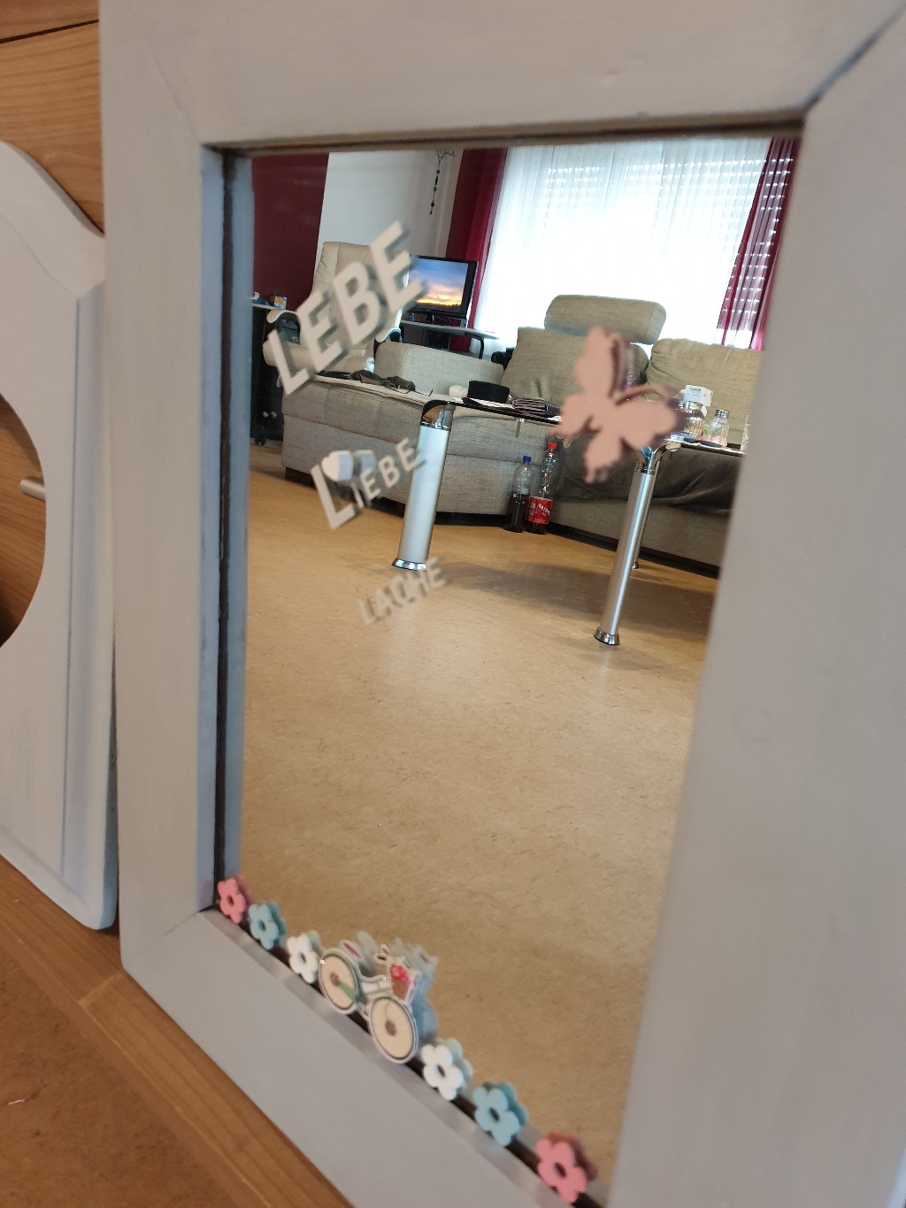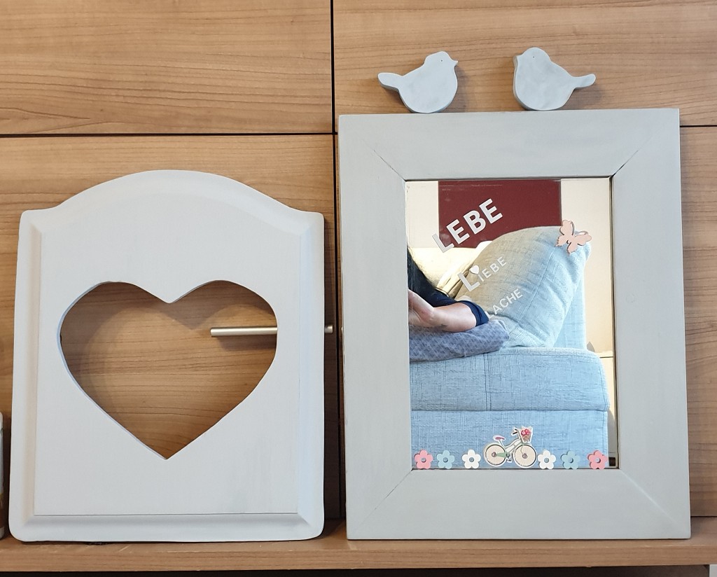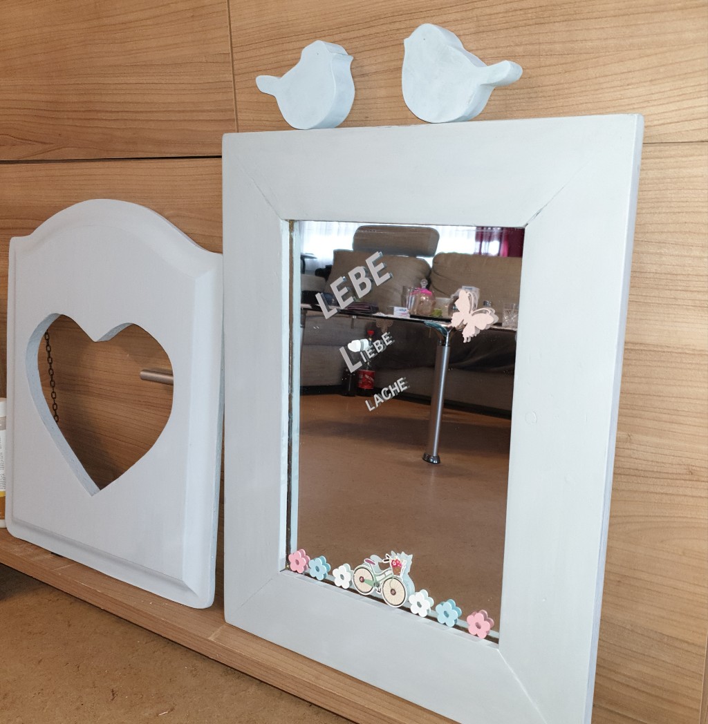 Spiegel aufgepeppt ,mit Kreidefarbe gestrichen