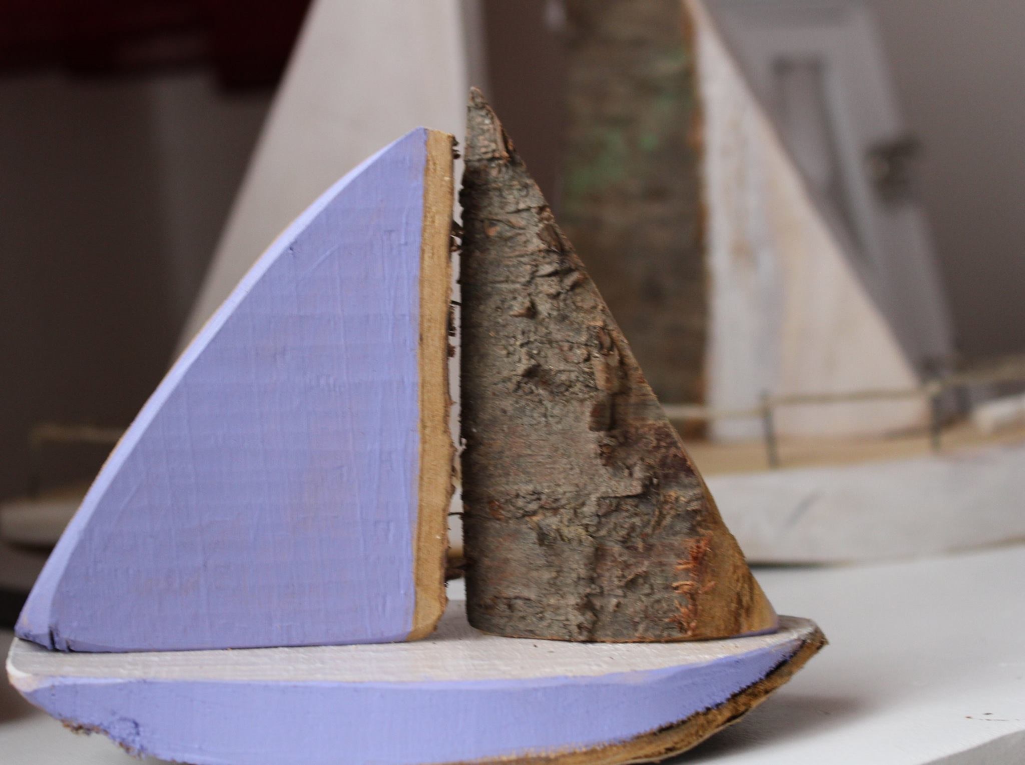 Segelschiff aus Kirschholz mit Rinde